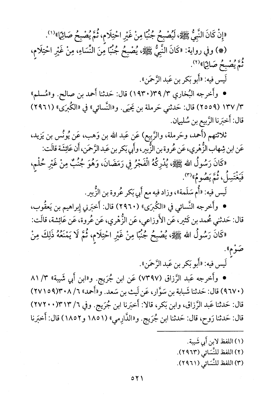 «كان رسول الله صَلى الله عَليه وسَلم يصبح جنبا من غير احتلام، ثم لا يمنعه ذلك من صوم».
