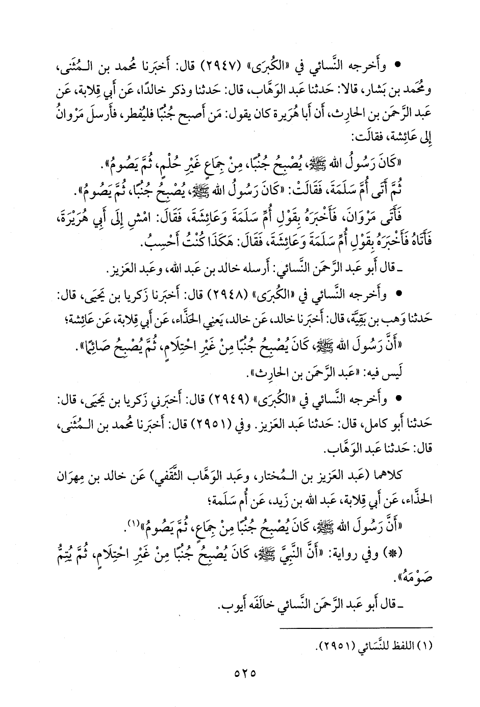 «أن رسول الله صَلى الله عَليه وسَلم كان يصبح جنبا من غير احتلام، ثم يصبح صائما».
