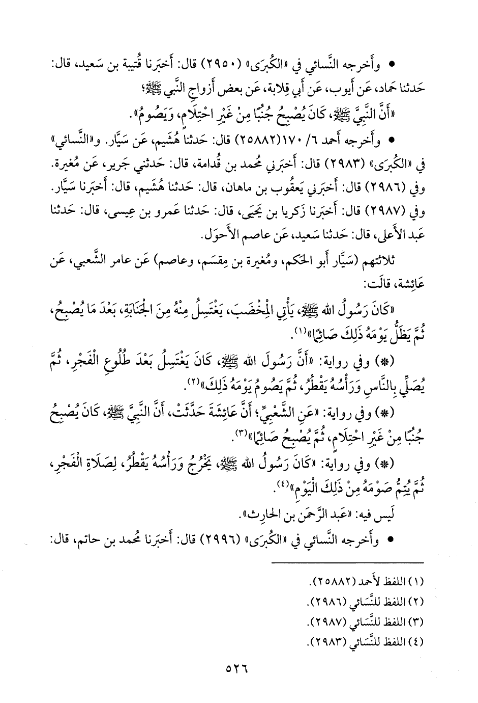 «أن النبي صَلى الله عَليه وسَلم كان يصبح جنبا من غير احتلام، ويصوم».