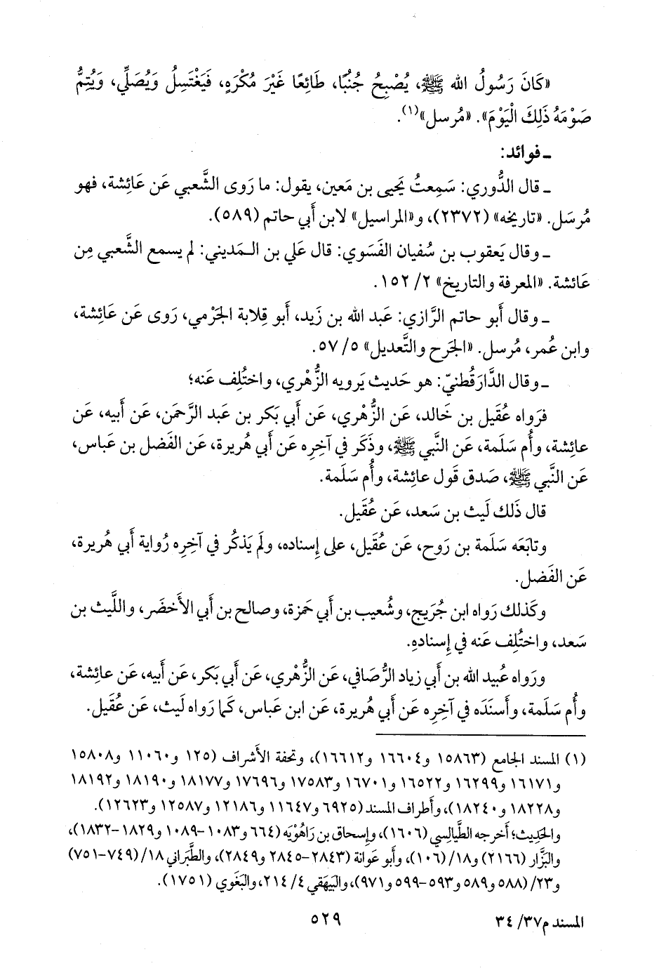 فرواه عُقيل بن خالد، عن الزُّهْري، عن أَبي بكر بن عبد الرَّحمَن، عن أبيه، عن عائشة، وأُم سلمة، عن النبي صَلى الله عَليه وسَلم وذكر في آخره عن أبي هريرة، عن الفضل بن عباس، عن النبي صَلى الله عَليه وسَلم صدق قول عائشة، وأُم سلمة.