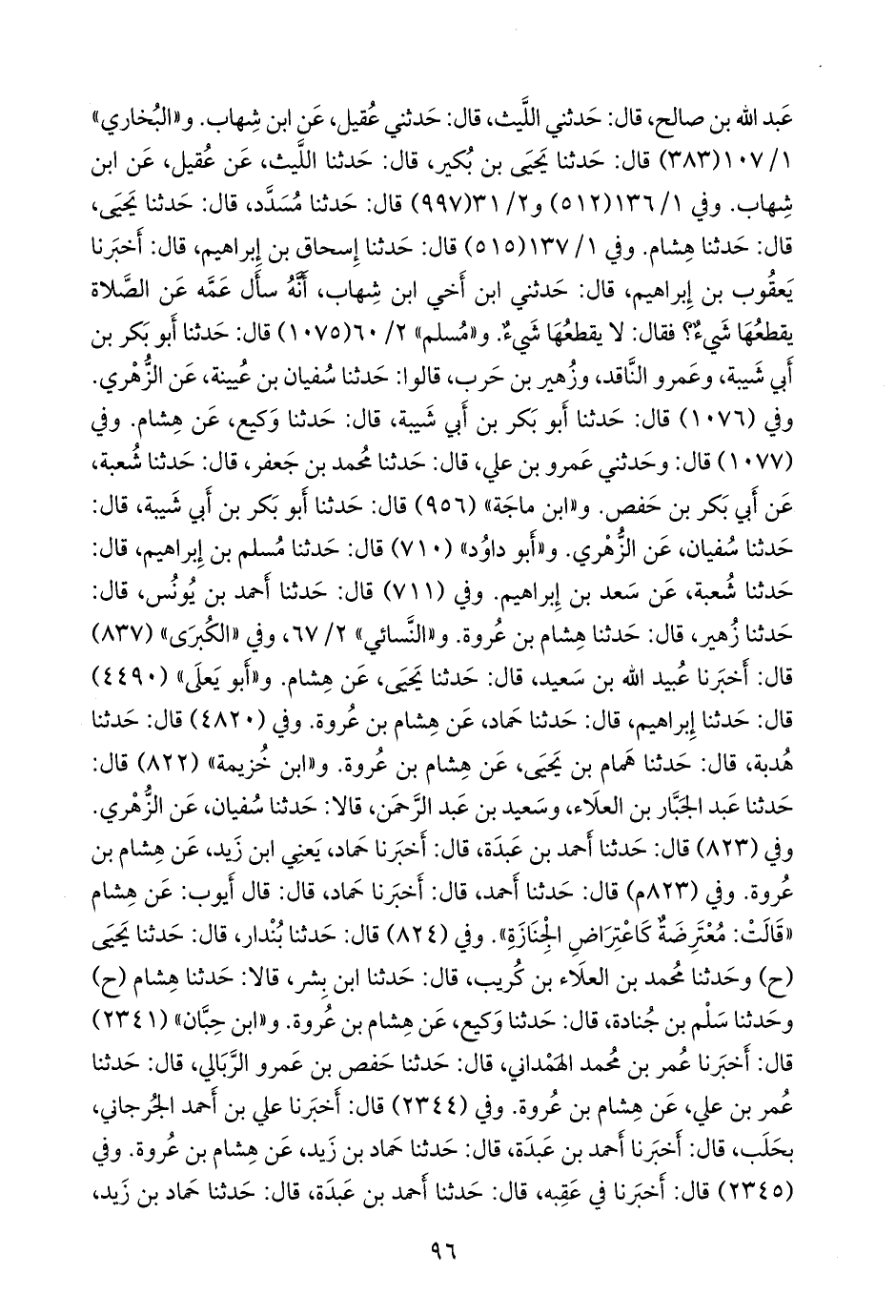 و «أَبو داود» (٧١٠) قال: حدثنا مسلم بن إبراهيم, قال: حدثنا شعبة، عن سعد بن إبراهيم. وفي (٧١١) قال: حدثنا أحمد بن يونس, قال: حدثنا زهير, قال: حدثنا هشام بن عروة. و «النَّسَائي» ٢/ ٦٧، وفي «الكبرى» (٨٣٧) قال: أخبرنا عُبيد الله بن سعيد، قال: حدثنا يحيى، عن هشام. و «أَبو يَعلى» (٤٤٩٠) قال: حدثنا إبراهيم، قال: حدثنا حماد، عن هشام بن عروة. وفي (٤٨٢٠) قال: حدثنا هُدبة، قال: حدثنا همام بن يحيى، عن هشام بن عروة. و «ابن خزيمة» (٨٢٢) قال: حدثنا عبد الجبار بن العلاء، وسعيد بن عبد الرَّحمَن، قالا: حدثنا سفيان، عن الزُّهْري. وفي (٨٢٣) قال: حدثنا أحمد بن عَبدة، قال: أخبرنا حماد، يعني ابن زيد، عن هشام بن عروة. وفي (٨٢٣ م) قال: حدثنا أحمد، قال: أخبرنا حماد، قال: قال أيوب: عن هشام «قالت: معترضة كاعتراض الجِنازة». وفي (٨٢٤) قال: حدثنا بندار, قال: حدثنا يحيى (ح) وحدثنا محمد بن العلاء بن كُريب, قال: حدثنا ابن بشر، قالا: حدثنا هشام (ح) وحدثنا سَلْم بن جُنادة, قال: حدثنا وكيع، عن هشام بن عروة. و «ابن حِبَّان» (٢٣٤١) قال: أخبرنا عمر بن محمد الهمداني، قال: حدثنا حفص بن عَمرو الربالي، قال: حدثنا عمر بن علي، عن هشام بن عروة. وفي (٢٣٤٤) قال: أخبرنا علي بن أحمد الجرجاني، بحلب، قال: أخبرنا أحمد بن عَبدة، قال: حدثنا حماد بن زيد، عن هشام بن عروة. وفي (٢٣٤٥) قال: أخبرنا في عقبه، قال: حدثنا أحمد بن عَبدة، قال: حدثنا حماد بن زيد،