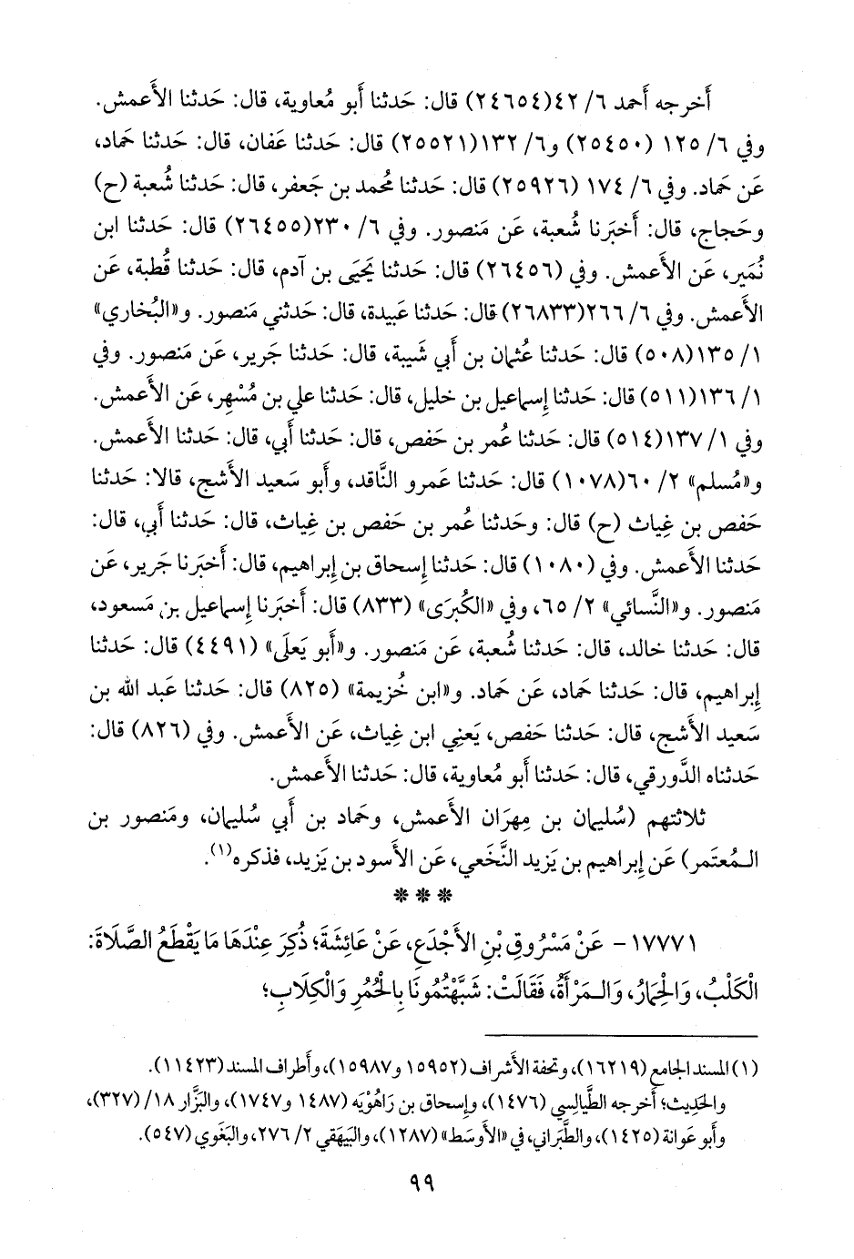 وفي ٦/ ١٧٤ (٢٥٩٢٦) قال: حدثنا محمد بن جعفر, قال: حدثنا شعبة (ح) وحجاج، قال: أخبرنا شعبة، عن منصور. وفي ٦/ ٢٣٠ (٢٦٤٥٥) قال: حدثنا ابن نُمير، عن الأعمش. وفي (٢٦٤٥٦) قال: حدثنا يحيى بن آدم, قال: حدثنا قطبة، عن الأعمش. وفي ٦/ ٢٦٦ (٢٦٨٣٣) قال: حدثنا عبيدة، قال: حدثني منصور. و «البخاري» ١/ ١٣٥ (٥٠٨) قال: حدثنا عثمان بن أبي شيبة، قال: حدثنا جرير، عن منصور. وفي ١/ ١٣٦ (٥١١) قال: حدثنا إسماعيل بن خليل, قال: حدثنا علي بن مُسهِر، عن الأعمش. وفي ١/ ١٣٧ (٥١٤) قال: حدثنا عمر بن حفص، قال: حدثنا أبي، قال: حدثنا الأعمش. و «مسلم» ٢/ ٦٠ (١٠٧٨) قال: حدثنا عَمرو الناقد، وأَبو سعيد الأشج، قالا: حدثنا حفص بن غياث (ح) قال: وحدثنا عمر بن حفص بن غياث, قال: حدثنا أبي, قال: حدثنا الأعمش. وفي (١٠٨٠) قال: حدثنا إسحاق بن إبراهيم، قال: أخبرنا جرير، عن منصور. و «النَّسَائي» ٢/ ٦٥، وفي «الكبرى» (٨٣٣) قال: أخبرنا إسماعيل بن مسعود، قال: حدثنا خالد، قال: حدثنا شعبة، عن منصور. و «أَبو يَعلى» (٤٤٩١) قال: حدثنا إبراهيم، قال: حدثنا حماد، عن حماد. و «ابن خزيمة» (٨٢٥) قال: حدثنا عبد الله بن سعيد الأشج, قال: حدثنا حفص، يعني ابن غياث، عن الأعمش. وفي (٨٢٦) قال: حدثناه الدورقي, قال: حدثنا أَبو معاوية, قال: حدثنا الأعمش.