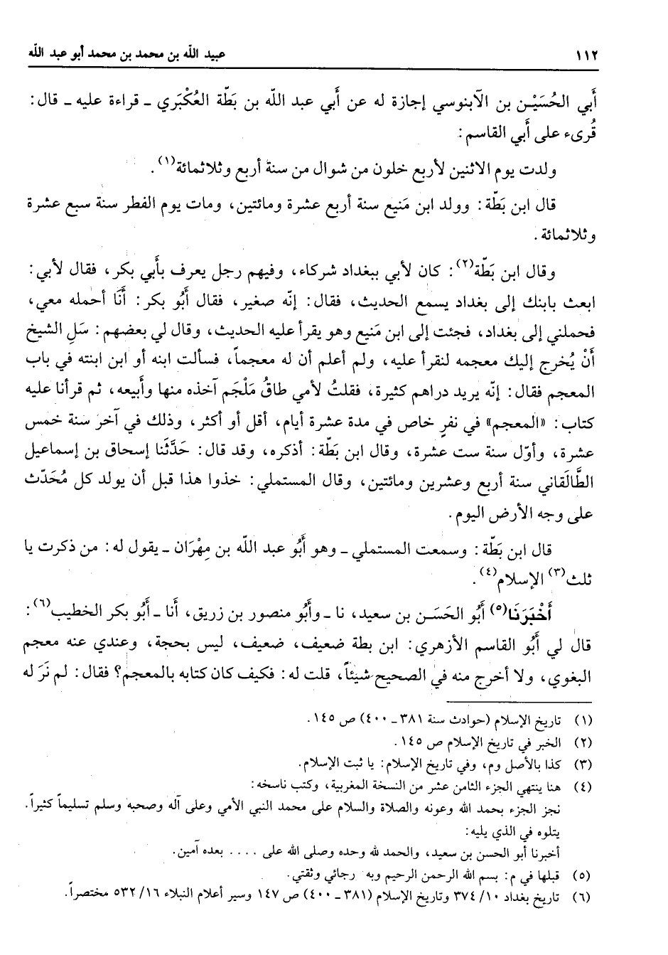 (6) تاريخ بغداد 10 / 374 وتاريخ الاسلام (381 - 400) ص 147 وسير أعلام النبلاء 16 / 532 مختصرا