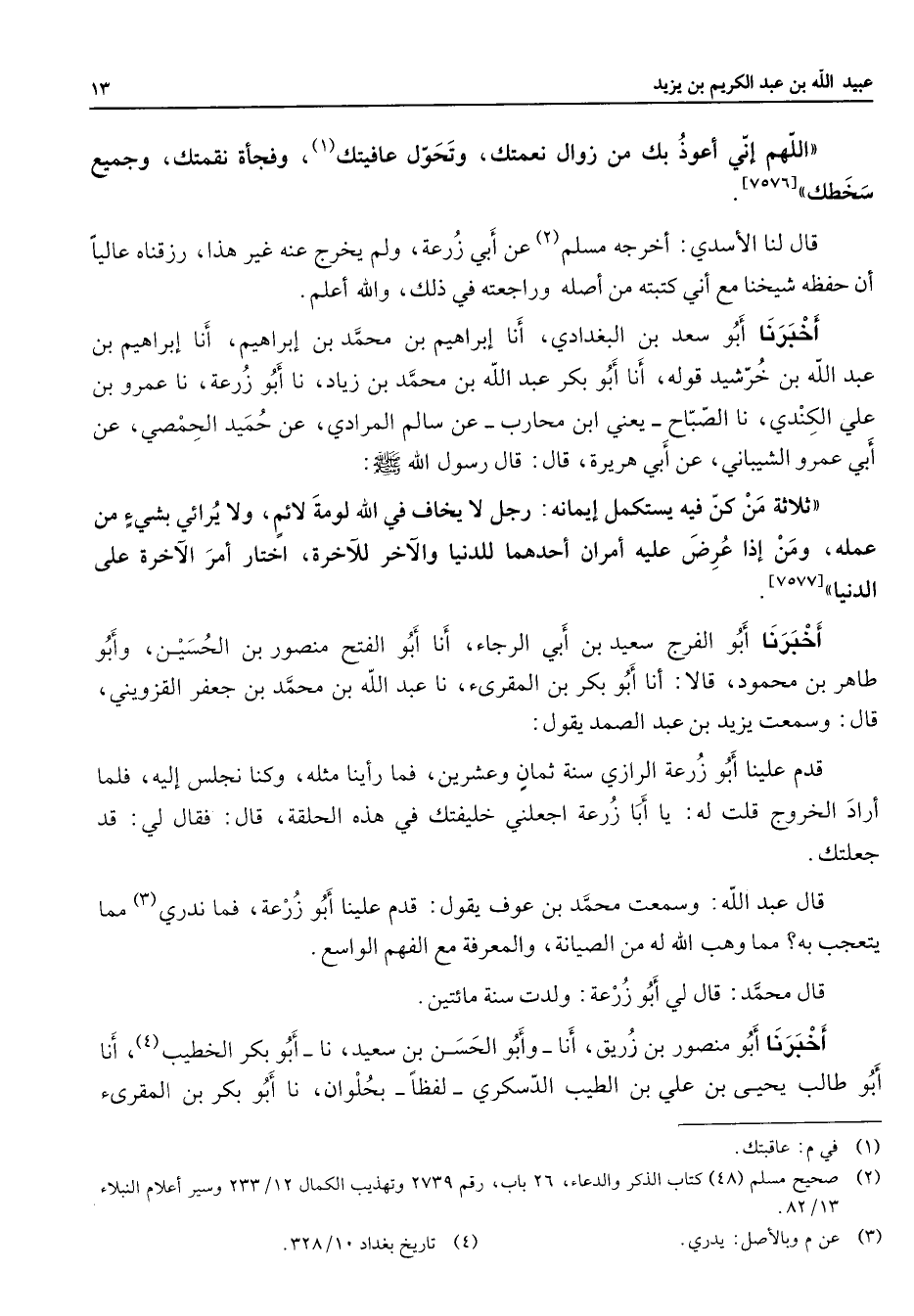 (2) صحيح مسلم (48) كتاب الذكر والدعاء 26 باب رقم 2739 وتهذيب الكمال 12 / 233 وسير أعلام النبلاء 13 / 82