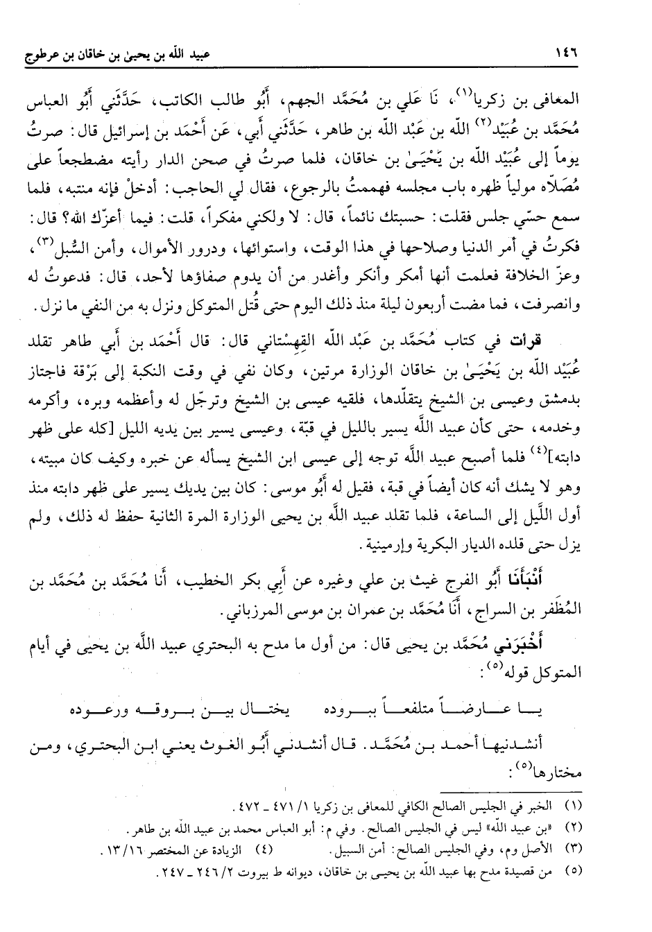 (5) من قصيدة مدح بها عبيد الله بن يحيى بن خاقان ديوانه ط بيروت 2 / 246 - 247
