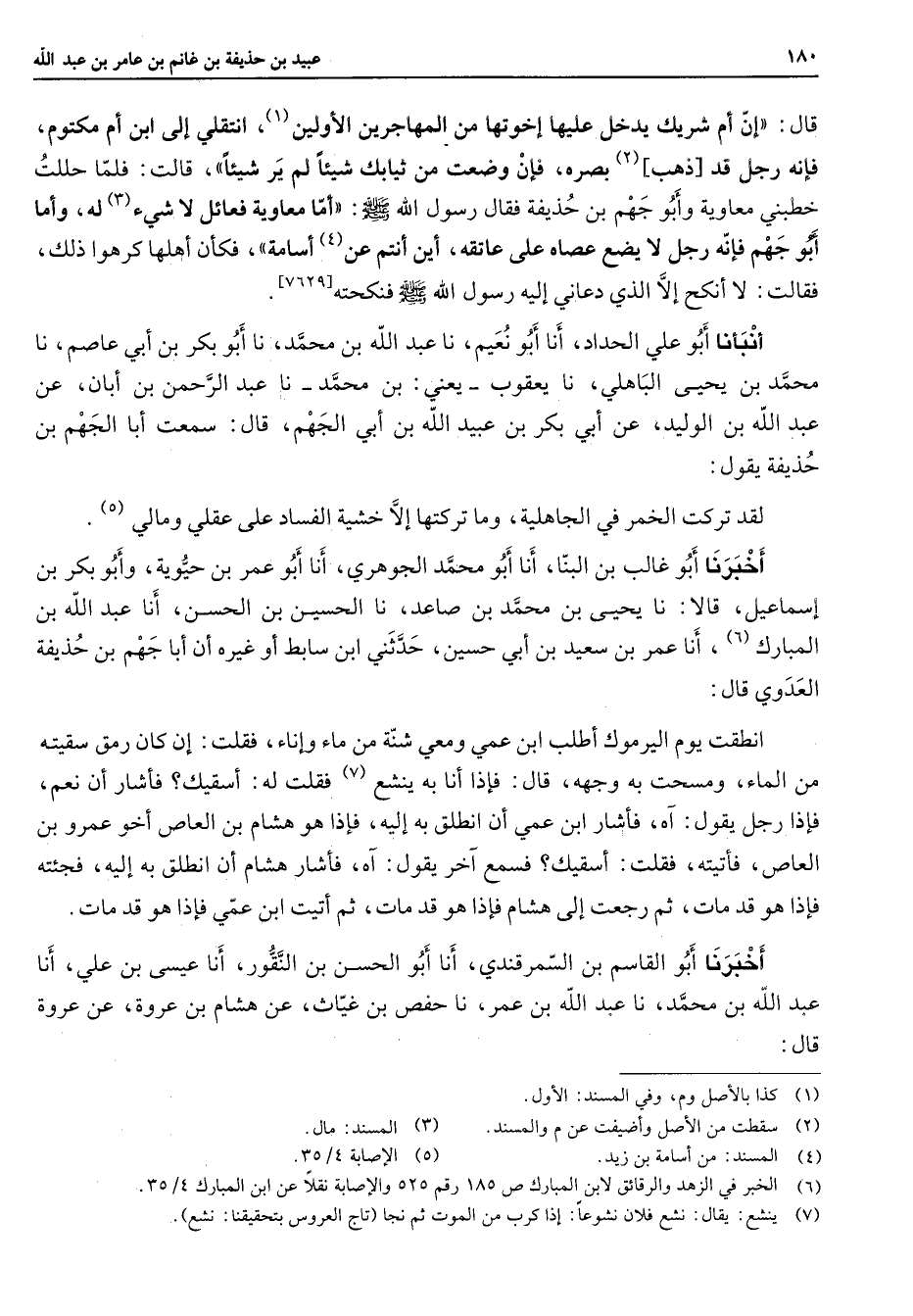 (6) الخبر في الزهد والرقائق لابن المبارك ص 185 رقم 525 والاصابة نقلا عن ابن المبارك 4 / 35