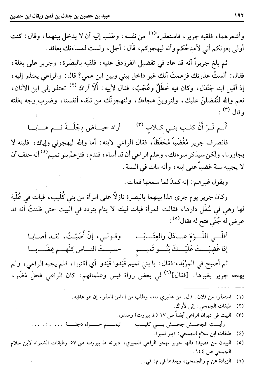 (3) البيت في ديوان اراعي أيضا ص 17 (ط بيروت) وصدره: رأيت الجحش جحش بني كليب * تيم حول دجلة (4) طبقات ابن سلام الجمحي: (بنو نمير)