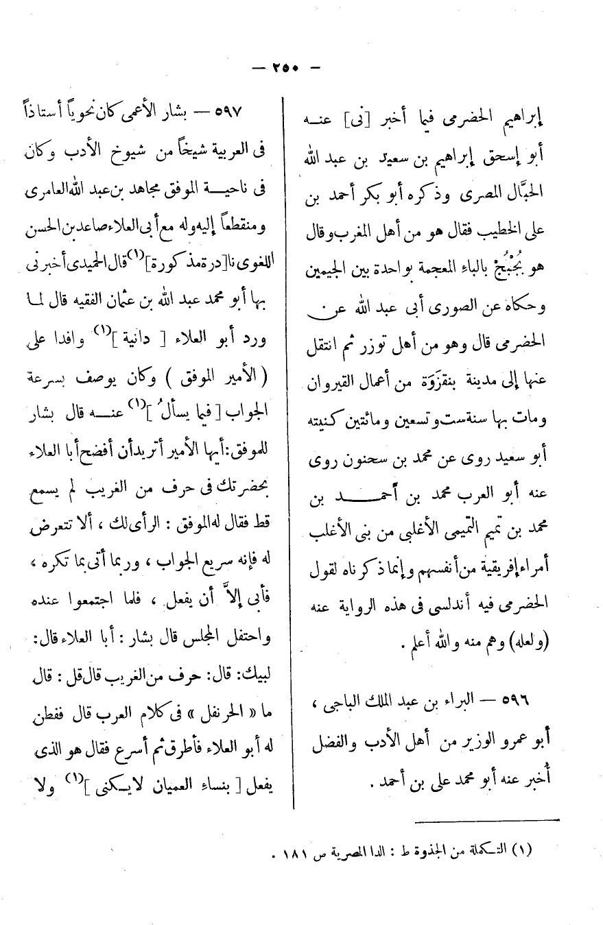 إبراهيم الحضرمي فيما أخبرني عنه أبو اسحق إبراهيم بن سعيد بن عبد الله الحبال المصري وذكره أبو بكر أحمد بن علي الخطيب فقال: هو من أهل المغرب وقال: هو وبجيج بالباء المعجمة بواحدة بين الجيمين وحكاه عن الصوري أبي عبد الله عن الحضرمي قال: وهو من أهل تورز ثم انتقل عنها إلى مدينة بنقزوة من أعمال القيروان، ومات بها سنة ست وتسعين ومائتين كنيته أبو سعيد روى عن محمد بن سحنون، روى عنه أبو العرب محمد بن أحمد بن محمد بن تميم التميمي الأغلبي من بني الأغلب أمراء إفريقية من أنفسهم وإنما ذكرناه لقول الحضرمي فيه أندلسي في هذه الرواية عنه [ولعله] وهم منه والله أعلم.