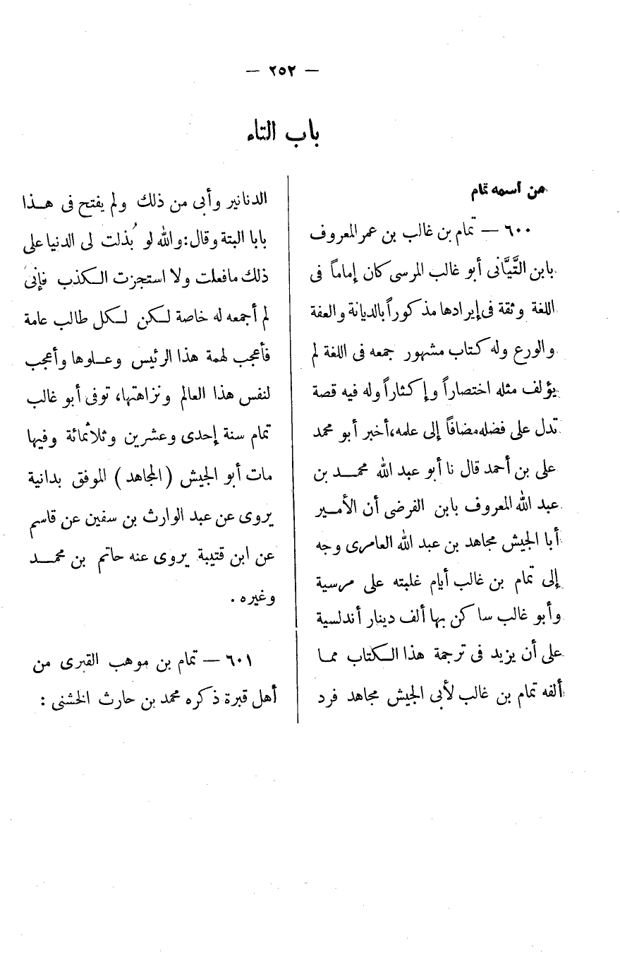600- تمام بن غالب بن عمر المعروف بابن التياني أبو غالب المرسي
