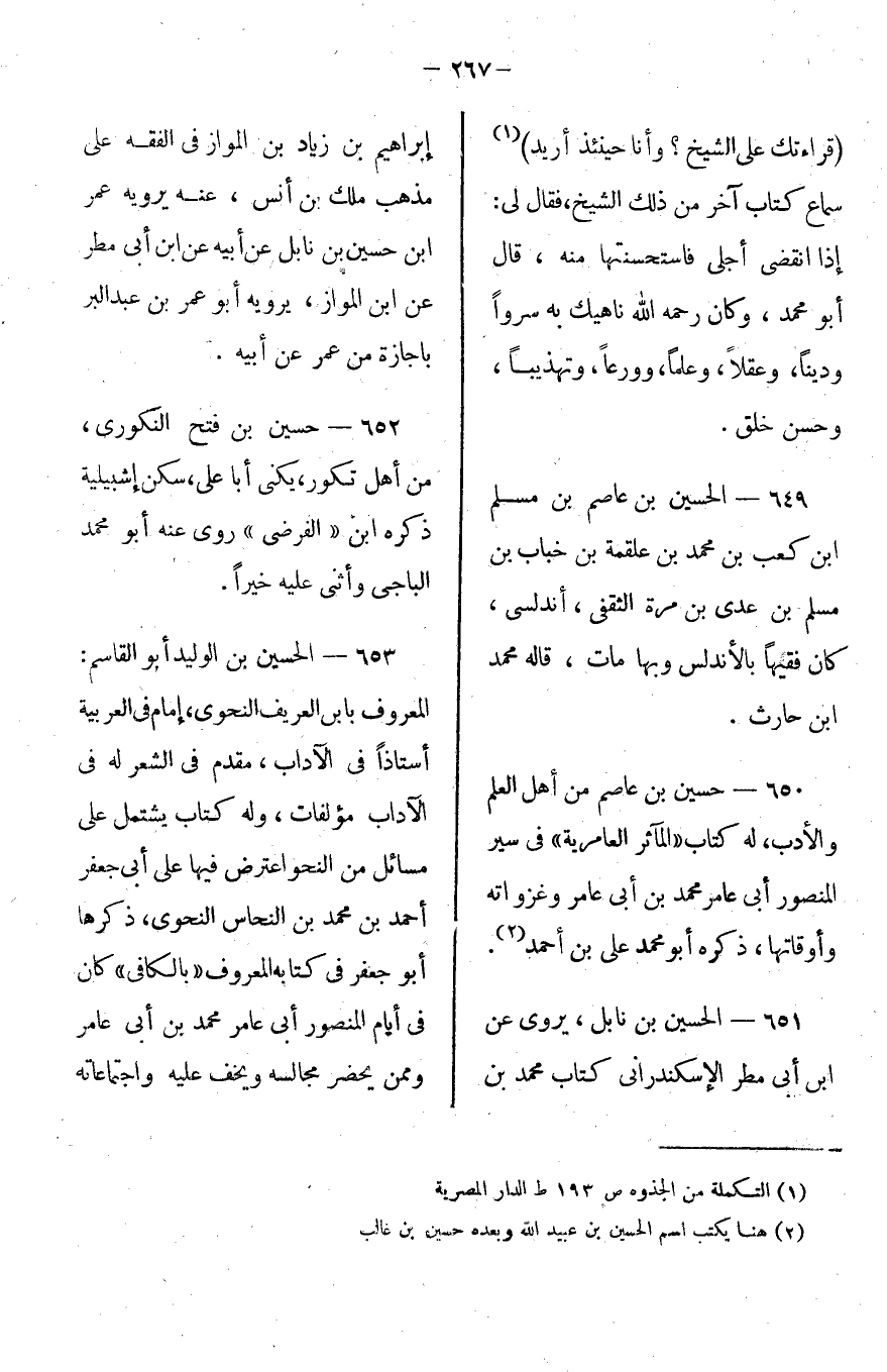 653- الحسين بن الوليد أو القاسم المعروف بابن العريف النحوي