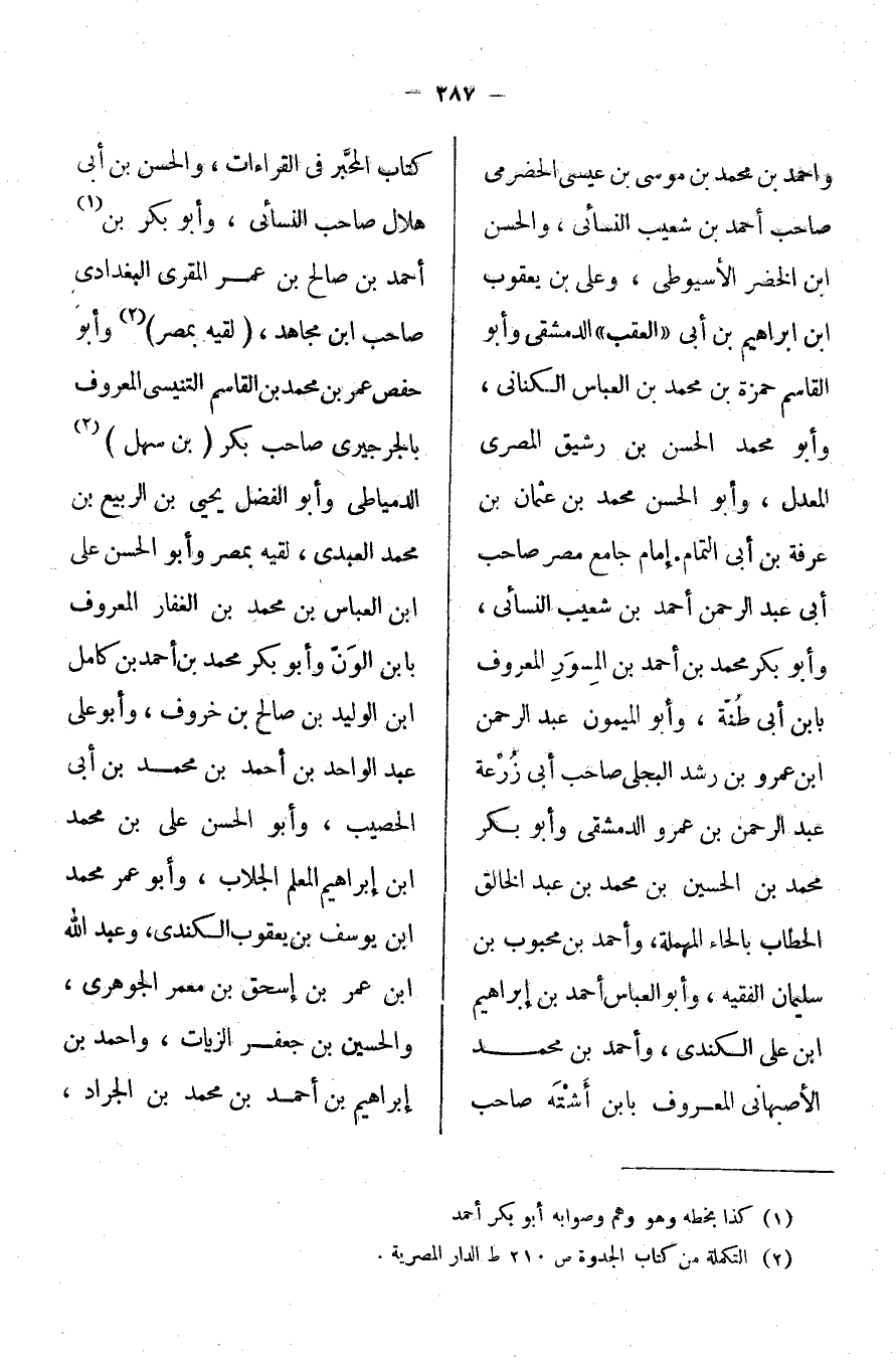 وأحمد بن محمد بن موسى بن عيسى الحضرمي صاحب أحمد بن شعيب النسائي، والحسن بن الخضر الأسيوطي، وعلي بن يعقوب بن إبراهيم بن أبي "العقب" الدمشقي وأبو القاسم حمزة بن محمد بن العباس الكناني، وأبو محمد الحسن ابن رشيق المصري المعدل، وأبو الحسن محمد بن عثمان بن عرفة بن أبي التمام، إمام جامع مصر صاحب أبي عبد الرحمن أحمد بن شعيب النسائي، وأبو بكر محمد بن أحمد بن المسور المعروف بابن أبي طنة، وأبو الميمون عبد الرحمن بن عمرو بن رشد البجلي صاحب أبي زرعة عبد الرحمن بن عمرو الدمشقي وأبو بكر محمد بن الحسين بن محمد بن عبد الخالق الخطاب بالحاء المهملة، وأحمد بن محبو بن سليمان الفقيه، وأبو العباس أحمد بن إبراهيم بن علي الكندي، وأحمد بن محمد الأصبهاني المعروف بنابن أشتة صاحب كتاب المحبر في القراءات، والحسن بن أبي هلال صاحب النسائي، ولأبو بكر أحمد بن صالح بن عمر المقرئ البغدادي صاحب ابن مجاهد، [لقيه بمصر] وأبو حفص عمر بن محمد بن القاسم التنيسي المعروف بالجرجيري صاحب بكر [ابن سهل] الدمياطي وأبو الفضل يحيى بن الربيع بن محمد العبدي، لقيه بمصر وأبو الحسين علي بن العباس بن محمد بن الغفار المعروف بابن ألوان وأبو بكر محمد بن أحمد بن كامل بن الوليد بن صالح بن خروف، وأبو علي عبد الواحد بن أحمد بن محمد بن أبي الخصيب، س وأبو الحسن علي بن محمد بن إبراهيم المعلم الجلاب، وأبو نعمر محمد بن يوسف بن يعقوب الكندي، وعبد الله ابن عمر بن اسحاق بن معمر الجوهري، والسحين بن جعفر الزيات، وأحمد بن إبراهيم بن أحمد بن محمد بن الجراد