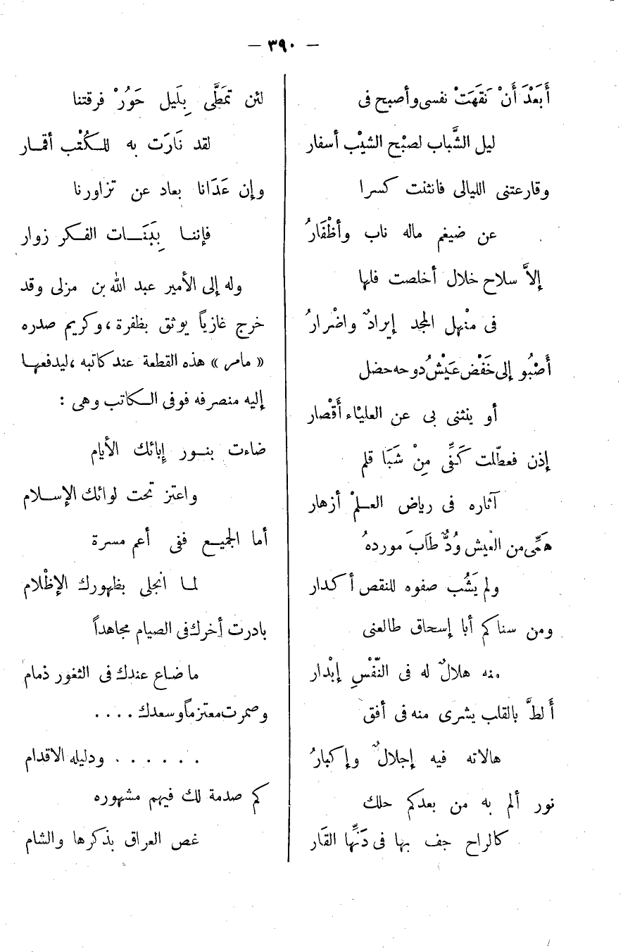 وله إلى الأمير عبد الله بن مزلي، وقد خرج غازياً يوثق بظفرة، وكريم صدره "ما مر" هذه القطعة عند كاتبه، ليدفعها إليه منصرفه فوفي الكاتب وهي: