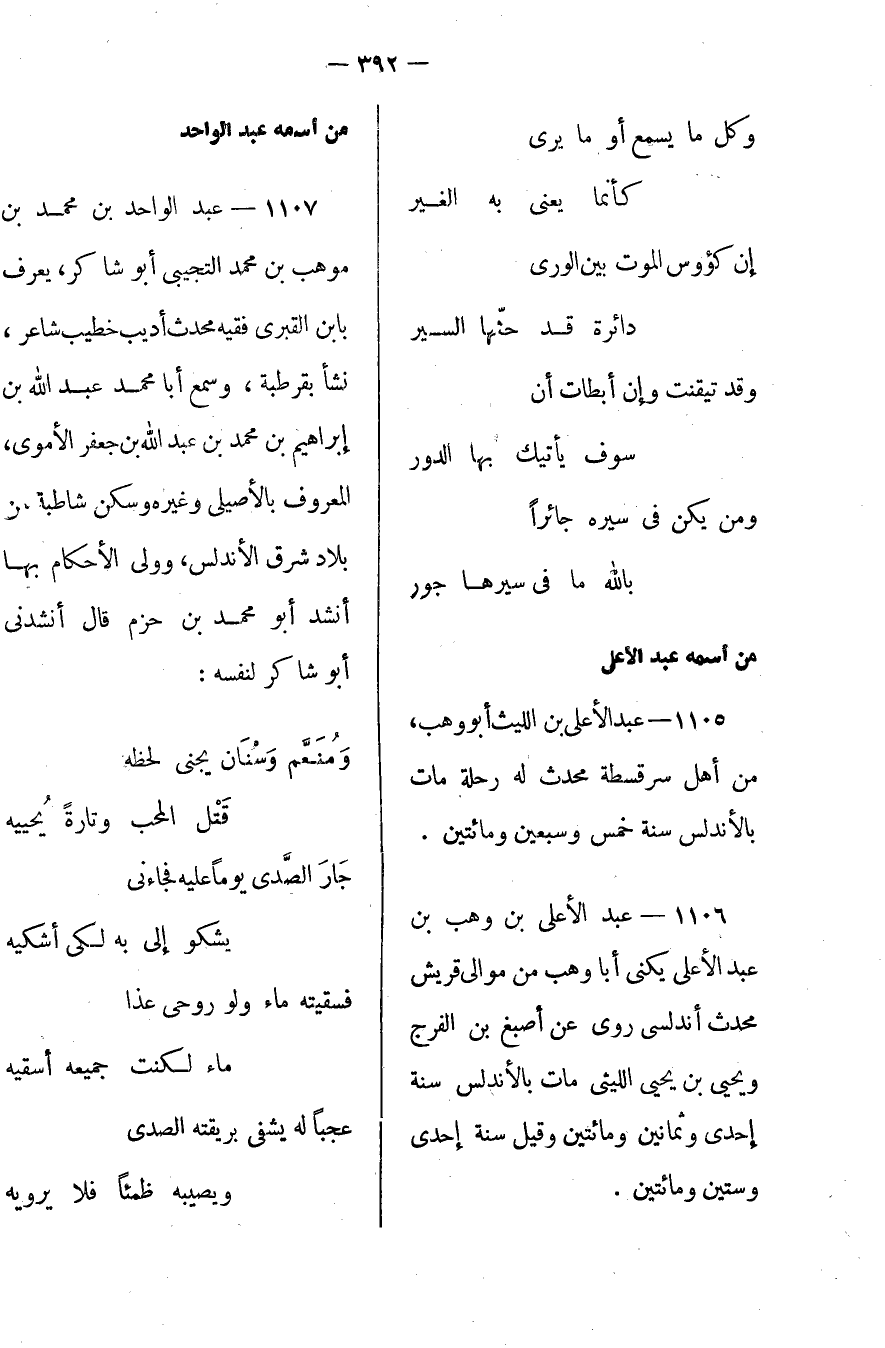 1107- عبد الواحد بن محمد بن موهب بن محمد التجيبي أبو شاكر يعرف بابن القبري