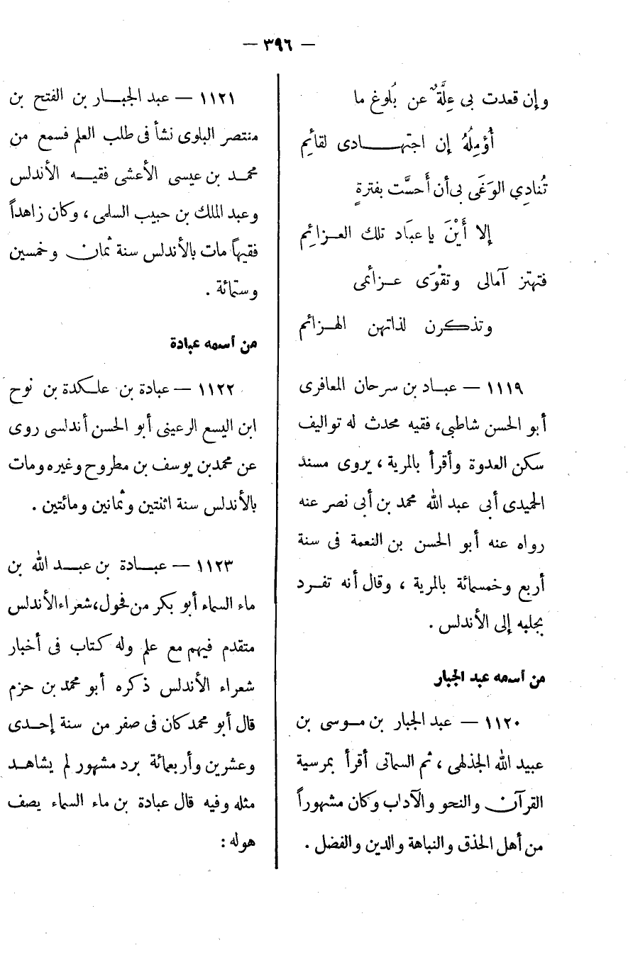 من فحول شعراء الأندلس متقدم فيهم مع علم وله كتاب في أخبار شعراء الأندلس ذكره أبو محمد بن حزم قال أبو محمد: كان في صفر من سنة إحدى وعشرين وأربعمائة برد مشهور لم يشاهد مثله وفيه قال عبادة بن ماء السماء يصف هوله: