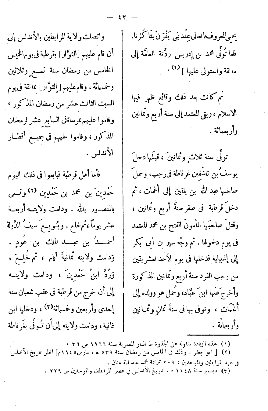 واتصلت ولاية المرابطين بالأندلس إلى أن قام عليهم [الثوار] بقرطبة في يوم الخميس الخامس من رمضان سنة تسع وثلاثين وخمسمائة، وقام عليهم [الثوار] بمالقة في يوم السبت الثالث عشر من رمضان المذكور، وقاموا عليهم بمرساة في السابع عشر لرمضان المذكور، وقاموا عليهم في جميع أقطار الأندلس.