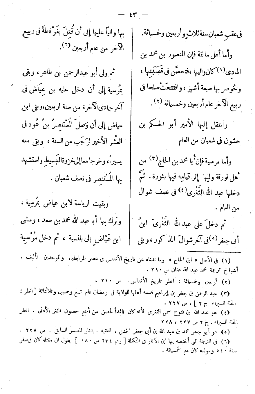 ثم ولي أبو عبد الرحمن بن طاهر، وبقي مرسية إلى أن دخل عليه ابن عياض في آخر جمادى الآخرة من سنة أربعين، وقي ابن عياض إلى أن وصل المستنصر بن هود في العشر الأخر لرجب من السنة، وبقي معه يسيراً، وخرجا معاً إلى غزوة البسيط واستشهد بها المستنصر في نصف شعبان.