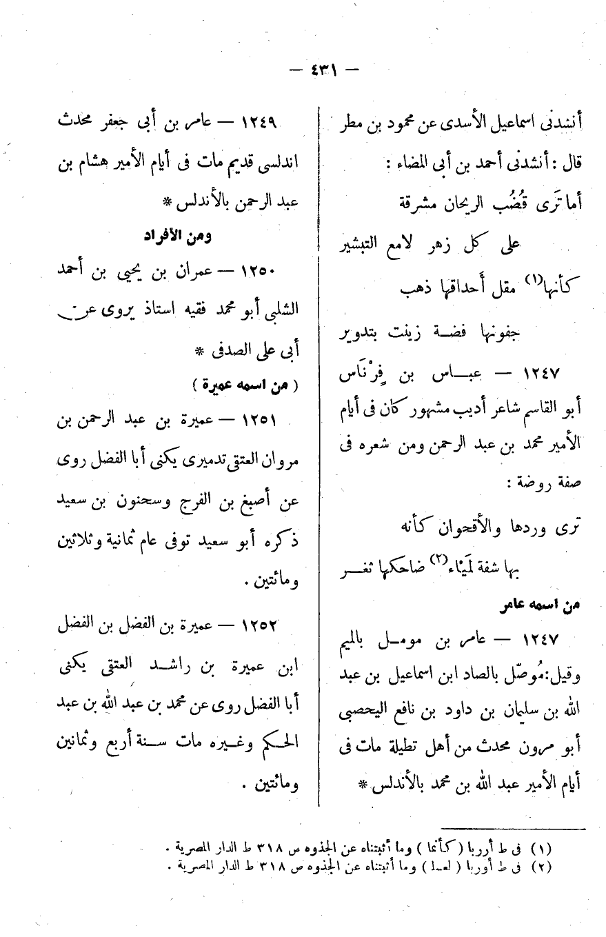 @@1251- عميرة بن عبد الرحمن بن مروان العتقي، تدميري يكنى أبا الفضل: روى عنه أصبغ بن الفرج وسحنون بن سعيد ذكره أبو سعيد، توفى عام ثمانية وثلاثين ومائتين.