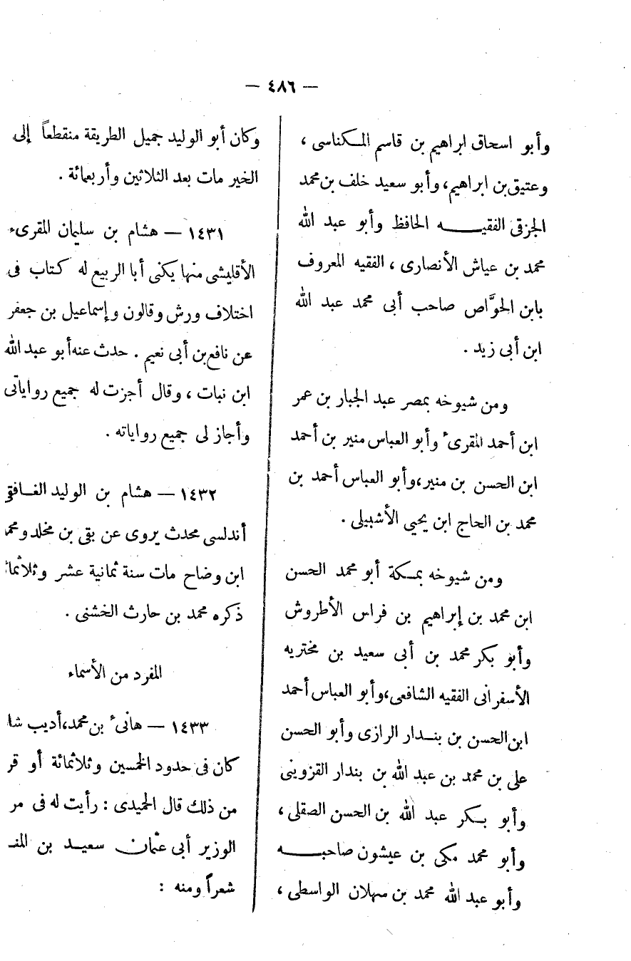1431- هشام بن سليمان المقرئ الأقليشي منها يكنى أبا الربيع