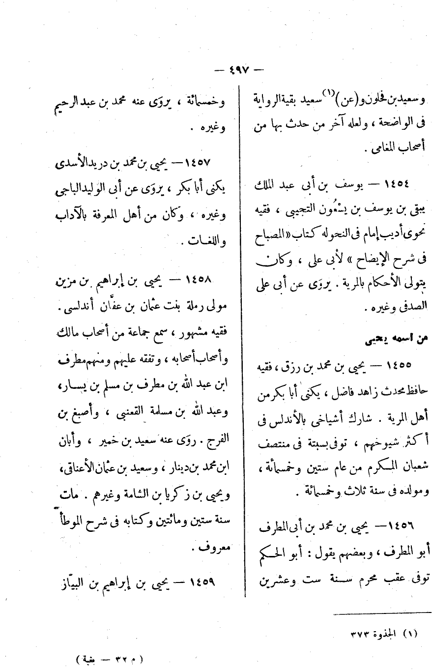 1455- يحيى بن محمد بن رزق، فقيه حافظ محدث زاهد فاضل، يكنى أبا بكر