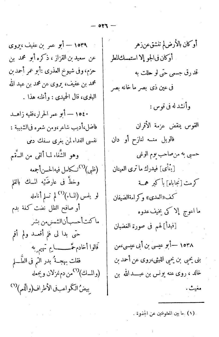 يروى عن سعيد بن القزاز، ذكره أبو محمد بن حزم، وفي شيوخ العذري: أبو عمر أحمد بن محمد بن عفيف، يروى عن محمد بن عبد الله البلوي، قال الحميدي: وأظنه هذا.