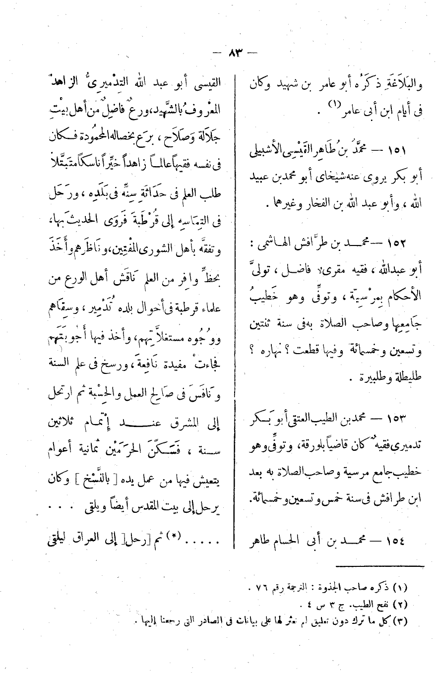 154- محمد بن أبي الحسام طاهر القيسي أبو عبد الله التدميري الزاهد المعروف بالشهيد