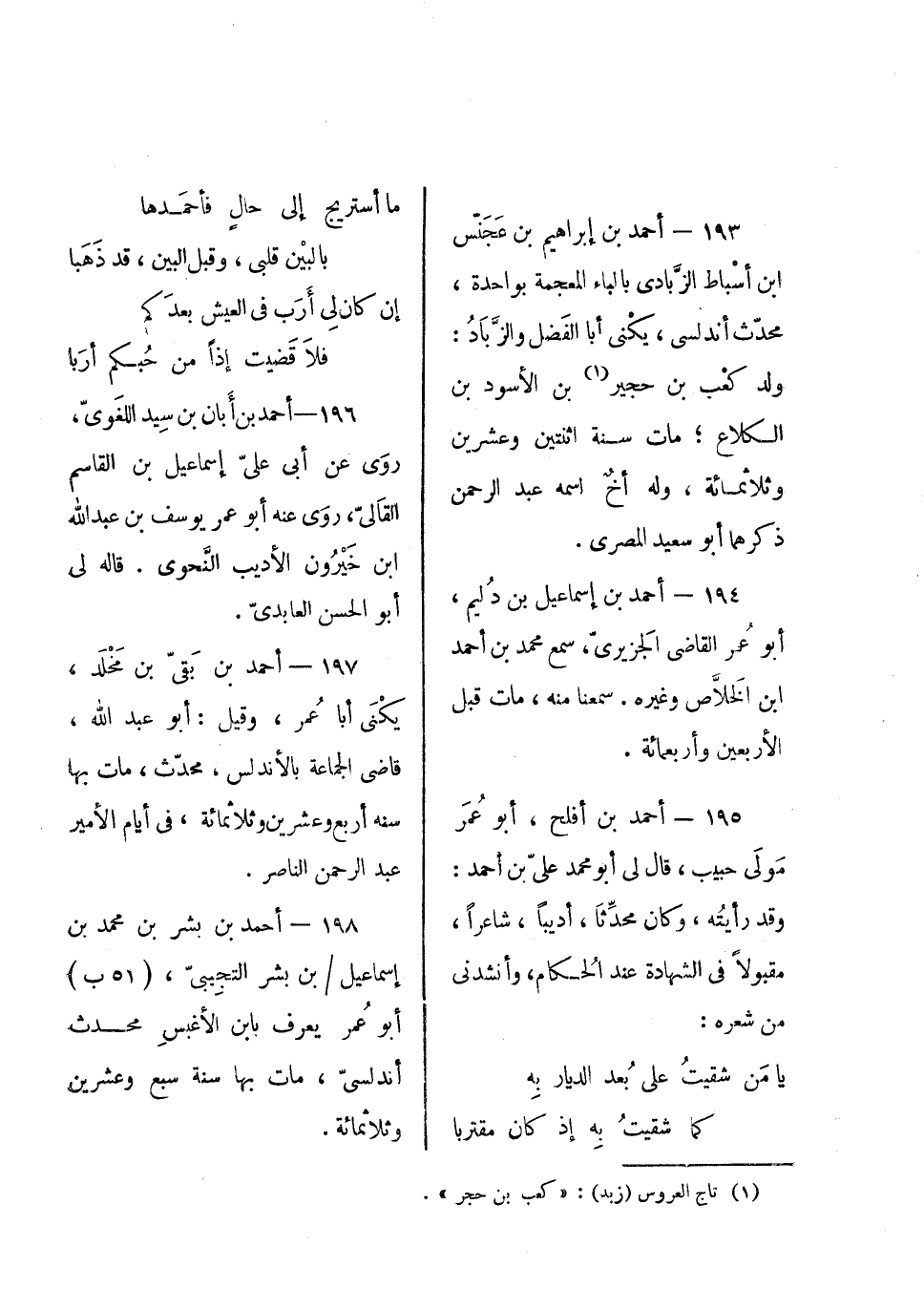 أحمد بن إبراهيم بن عجنس بن أسباط الزبادي بالباء المعجمة بواحدة، محدث أندلسي، يكنى أبا الفضل والزباد: ولد كعب بن حجير بن الأسود ابن الكلاع؛ مات سنة اثنتين وعشرين وثلاث مائة، وله أخ اسمه عبد الرحمن ذكرهما أبو سعيد المصري.