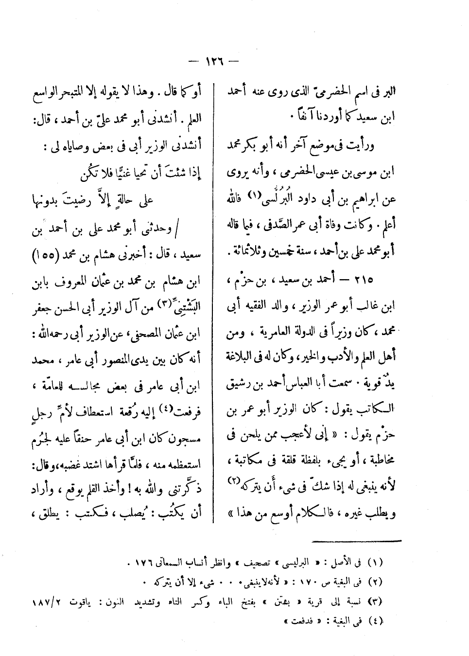 ورأيت في موضع آخر أنه أبو بكر محمد بن موسى بن عيسى الحضرمي، وأنه يروى عن إبراهيم بن أبي داود البرلسي فالله أعلم. وكانت وفاة أبي عمر الصدفي، فيما قاله أبو محمد علي بن أحمد، سنة خمسين وثلاث مائة.