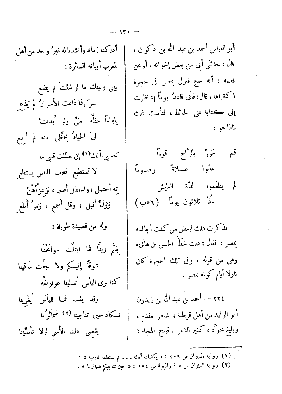 أبو العباس أحمد بن عبد الله بن ذكوان، قال: حدثني أبي عن بعض إخوانه، أو عن نفسه: أنه حج فنزل بمصر في حجرة اكتراها، قال: فإبى قاعد يوماً إذ نظرت إلى كتابة على الحائط، فتأملت ذلك فإذا هو: