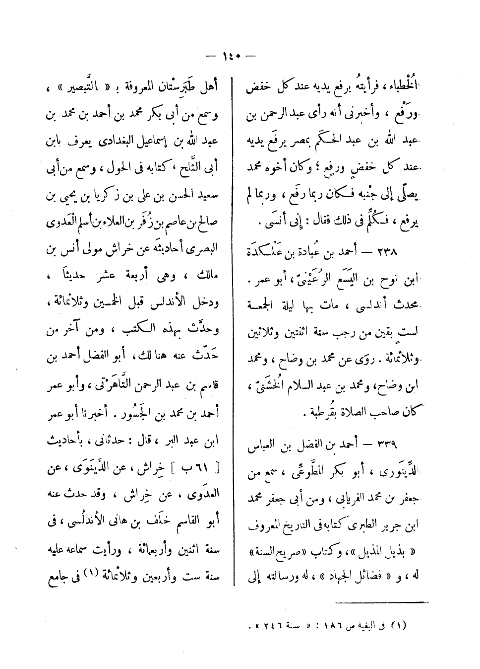 أحمد بن الفضل بن العباس الدينوري، أبو بكر المطوعى، سمع من جعفر بن محمد الفريابى، ومن أبي جعفر محمد بن جرير الطبري كتابه في التاريخ المعروف بذيل المذيل، وكتاب صريح السنة له، وفضائل الجهاد، له ورسالته إلى أهل طبرستان المعروفة بالتبصير، وسمع من أبي بكر محمد بن أحمد بن محمد بن عبد الله ابن إسماعيل البغداذي يعرف بابن أبي الثلج، كتابه في الحول، وسمع من أبي سعيد الحسن بن علي بن زكريا بن يحيى بن صالح بن عاصم بن زفر بن العلاء بن أسلم العدوي البصري أحاديثه عن خراش مولى أنس بن مالك، وهي أربعة عشر أحاديثاً، ودخل الأندلس قبل الخمسين وثلاث مائة، وحدث بهذه الكتب، ومن آخر من حدث عنه هنالك: أبو الفضل أحمد بن قاسم بن عبد الرحمن التاهرتى، وأبو عمر أحمد ابن محمد بن الجسور. أخبرنا أبو عمر بن عبد البر، قال: حدثانى بأحاديث خراش، عن الدينوي، عن العدوى، عن خراش، وقد حدث عنه أبو القاسم خلف بن هانى الأندلسى، في سنة اثنين وأربع مائة، ورأيت سماعه عليه سنة ست وأربعين وثلاث مائة في جامع