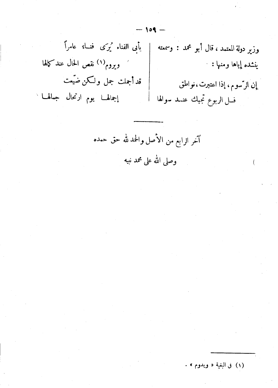 آخر الرابع من الأصل والحمد لله حق حمده وصلى الله على محمد نبيه