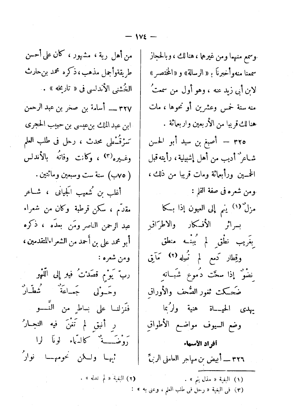 أفراد الاسماء: أبيض بن مهاجر العاملى الريي من أهل ريةن مشهور، كان على أحسن طريقة وأجمل مذهب، ذكره محمد بن حارث الخشنى الأندلسى في تاريخه.