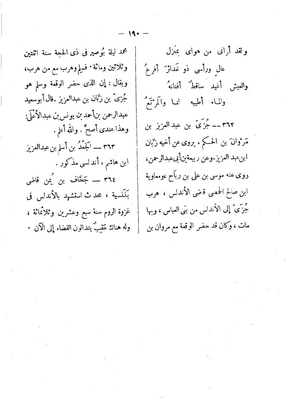 جزي بن عبد العزيز بن مروان بن الحكم، يروى عن أخيه زبان ابن عبد العزيز، وعن ربيعة بن أبي عبد الرحمن؛ روى عنه موسى بن علي بن رباح، ومعاوية بن صالح الحمصى قاضي الأندلس، هرب جزي إلى الأندلس من بني العباس، وبها مات، وكان قد حضر الوقعة مع مروان بن محمد ليلة بوصير في ذي الحجة سنة اثنتين وثلاثين ومائة. فسلم وهرب مع من هرب، ويقال: إن الذي حضر الوقعة وسلم هو جزي بن زبان بن عبد العزيز. قال أبو سعيد عبد الرحمن بن أحمد بن يونس بن عبد الأعلى: وهذا عندي أصح، والله أعلم.