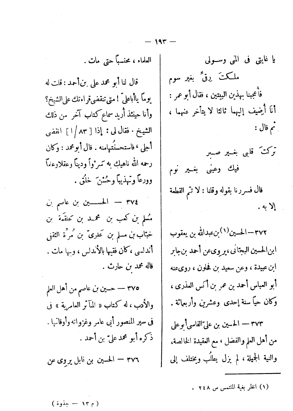 فأعجبنا بهذين البيتين، فقال أبو عمر: أنا أضيف إليهما ثالث لا يتأخر عنهما، ثم قال: