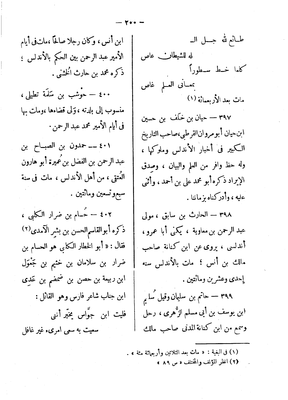 حيان بن خلف بن حسين بن حيان أبو مروان القرطبي، صاحب التاريخ الكبير في أخبار الأندلس وملوكها، وله حظ وافر من العلم والبيانن وصدق الإيراد ذكره أبو محمد على بن أحمد، وأثنى عليه، وأدركناه بزماننا.