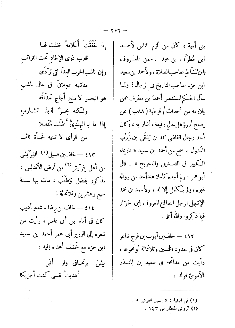 خلف بن أيوب بن فرج شاعر كان في حدود الخمسين وثلاث مائة أو نحوها، رأيت مدائحه في سعيد بن المنذر الأموي قوله: