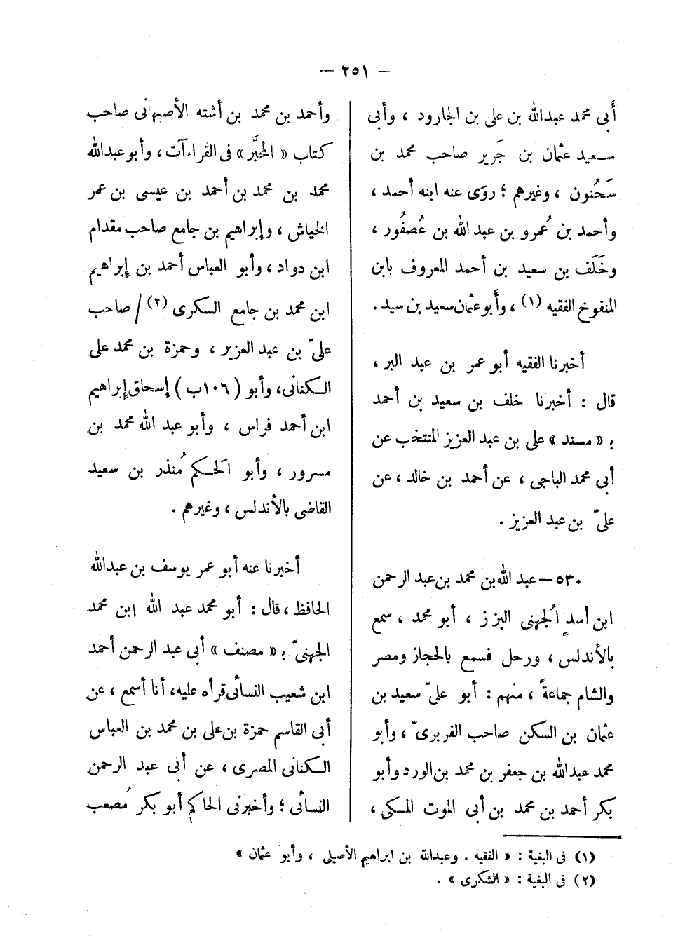 أخبرنا الفقيه أبو عمر بن عبد البر، قال: أخبرنا خلف بن سعيد بن أحمد بمسند علي بن عبد العزيز، المنتخب عن أبي محمد الباجي، عن أحمد بن خالد، عن علي بن عبد العزيز.