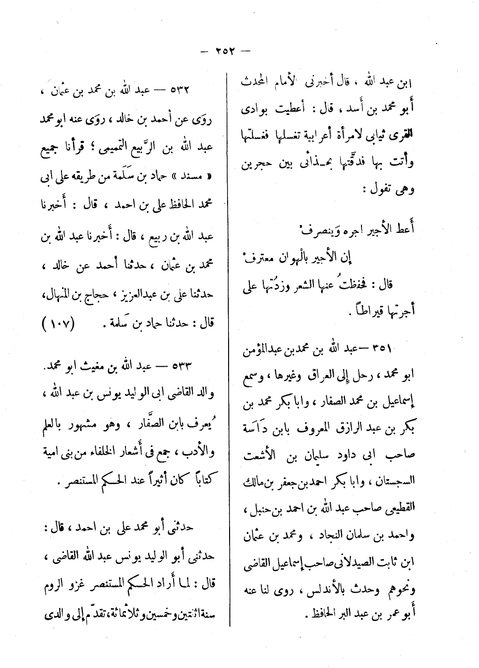 بن عبد الله، قال: أخبرني الإمام المحدث أبو محمد بن أسد، قال: أعطيت بوادي القرى ثيابي لامرأة أعرابية تغسلها فغسلتها وأتت بها فدقتها بحذائي بين حجرين وهي تقول: