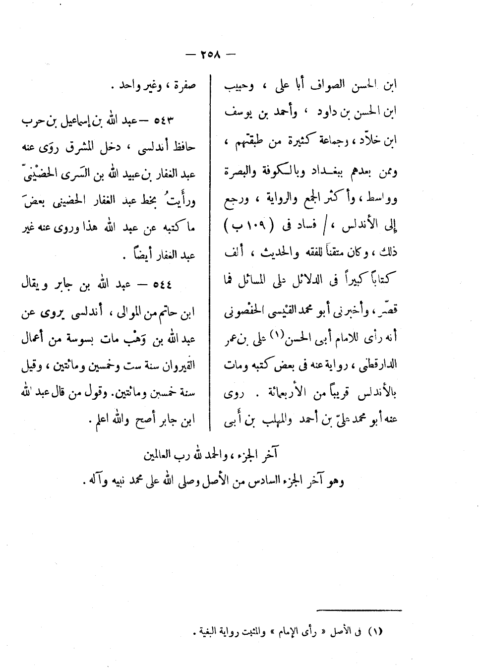 وهو آخر الجزء السادس من الأصل وصلى الله على محمد نبيه وآله.