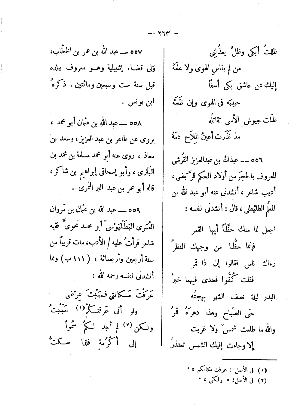 عبد الله بن عثمان بن مروان العمري البطليوسي أبو محمد، نحوي فقيه شاعر قرأت عليه الأدب، مات قريباً من سنة أربعين وأربع مائة، ومما أنشدني لنفسه رحمه الله: