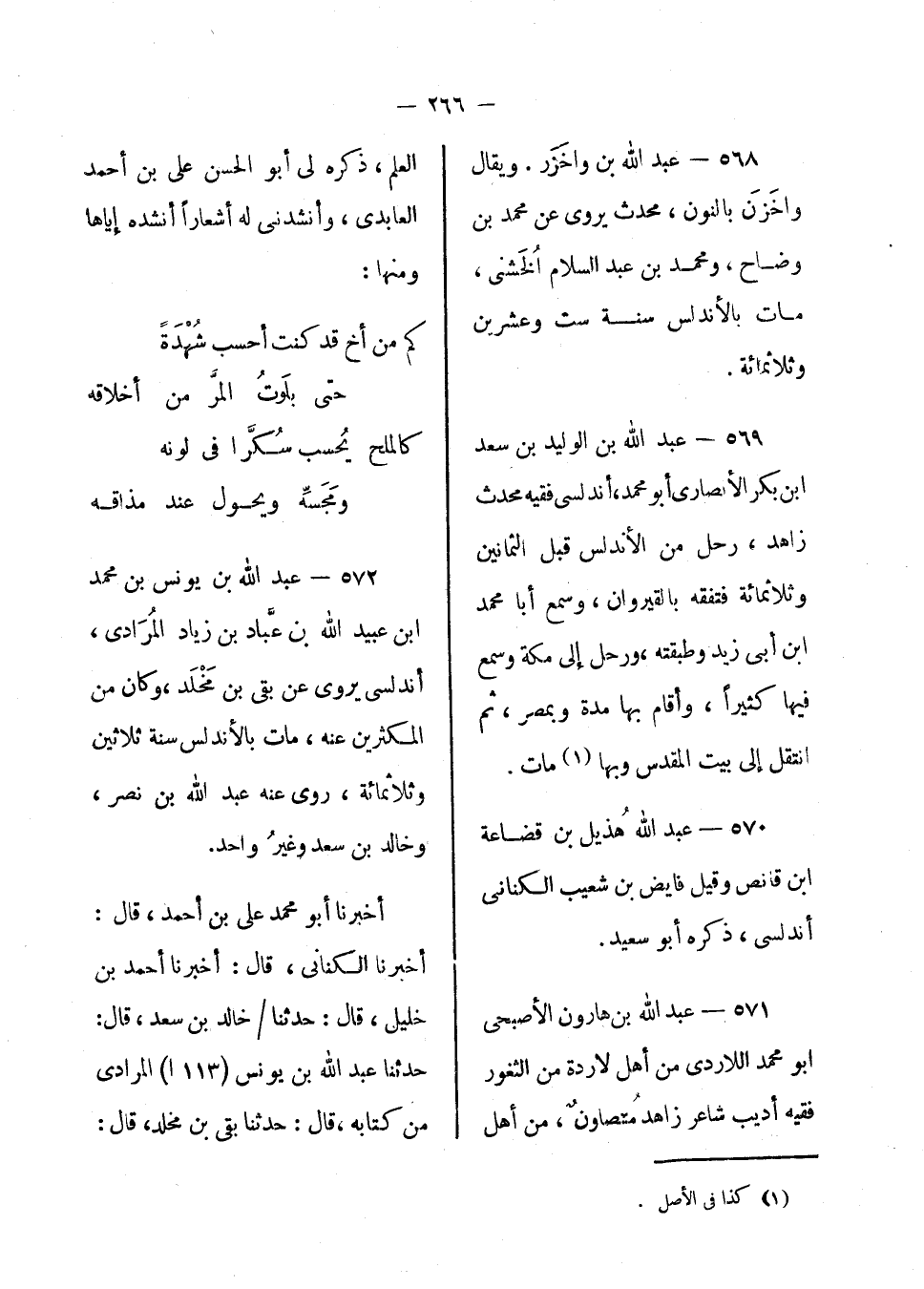 أخبرنا أبو محمد على بن أحمد، قال: أخبرنا الكناني، قال: أخبرنا أحمد ابن خليل، قال: حدثنا خالد بن سعد، قال: حدثنا عبد الله بن يونس المرادي من كتابه، قال: حدثنا بي بن مخلد، قال: