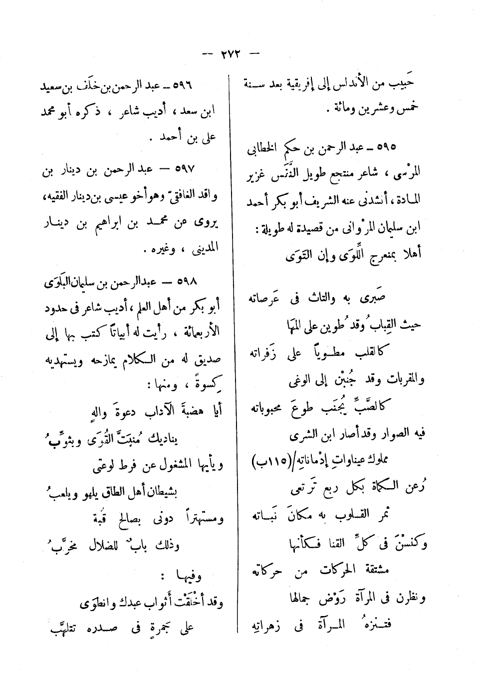 عبد الرحمن بن سليمان البلوى أبو بكر من أهل العلم، أديب شاعر في حدود الأربع مائة، رأيت أبياتاً كتب بها إلى صديق له من أهل الكلام يمازحه ويستهديه كسوة، ومنها: