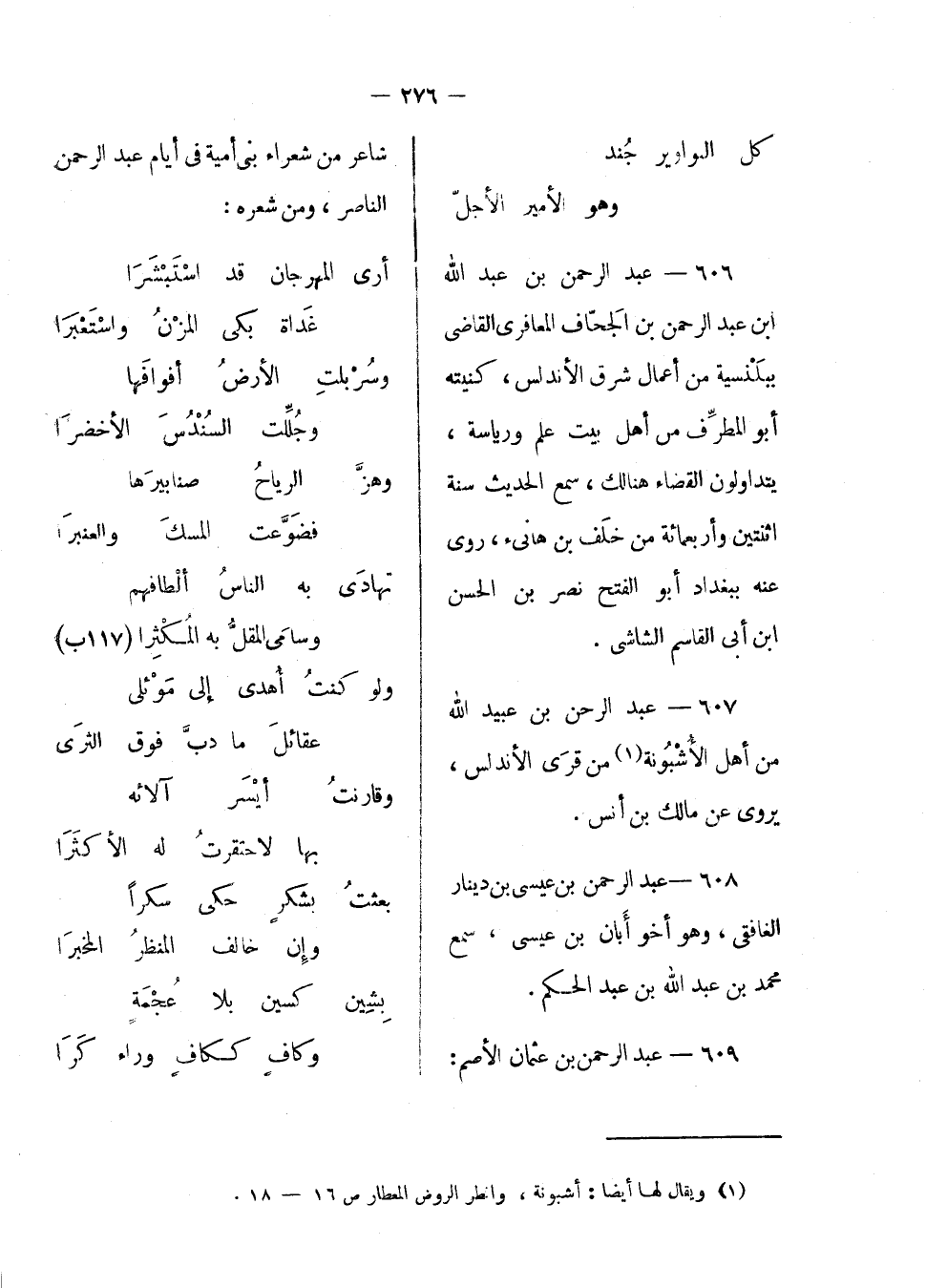 عبد الرحمن بن عبد الله بن عبد الرحمن بن الجحاف المعافري القاضي ببلنسية من أعمال شرق الأندلس، كنيته أبو المطرف من أهل بيت علم ورياسة، يتداولون القضاء هنالك، سمع الحديث سنة اثنتين وأربع مائة من خلف بن هاني، روى عنه ببغداد أبوالفتح نصر بن الحسن بن أبي القاسم الشاشي.