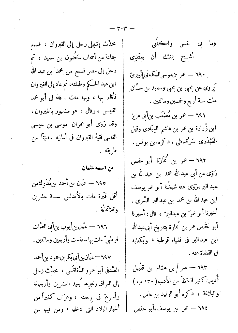 عمر بن موسى الكناني إلبيري يروى عن يحيى بن يحيى وسعد بن حسان مات سنة أربع وخمسين ومائتين.