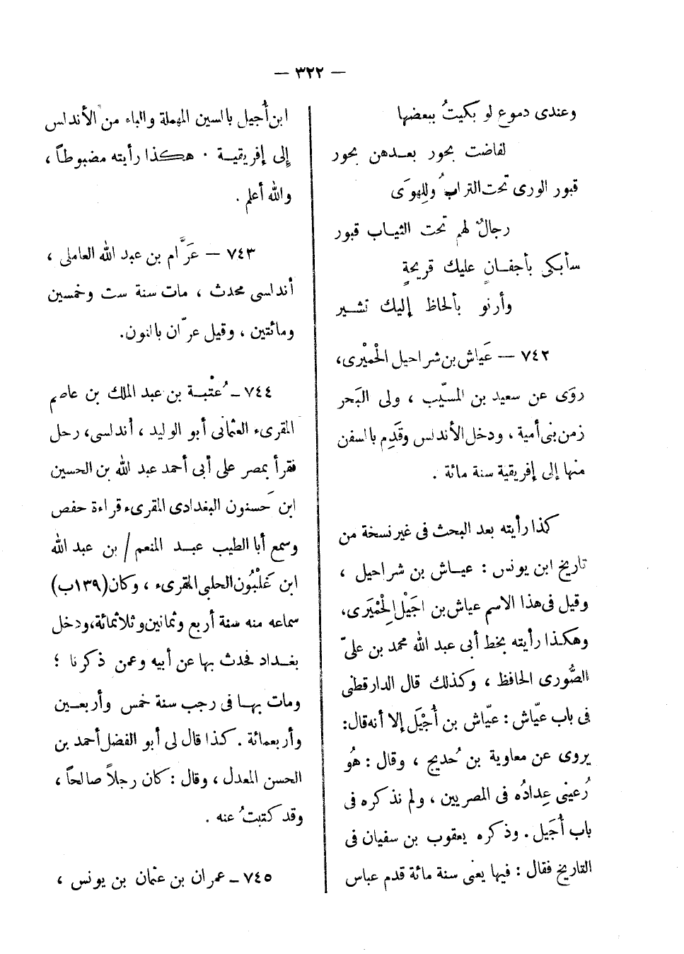 كذا رأيته بعد البحث في غير نسخة من تاريخ ابن يونس: عياش بن شراحيل، وقيل في هذا الاسم عياش بن اجيل الحميري، وهكذا رأيته بخط أبي عبد الله محمد بن علي الصوري الحافظ، وكذلك قال الدارقطني في باب عياش: عياش بن أجيل إلا أنه قال: يروى عن معاوية بن حديج، وقال: هو رعينى عداده في المصريين، ولم نذكره في باب أجيل. وذكره يعقوب بن سفيان في التاريخ فقال: فيها يعنى سنة مائة قدم عباس ابن أجيل بالسين المهملة والباء من الأندلس إلى إفريقية. هكذا رأيته مضبوطا، فالله أعلم.