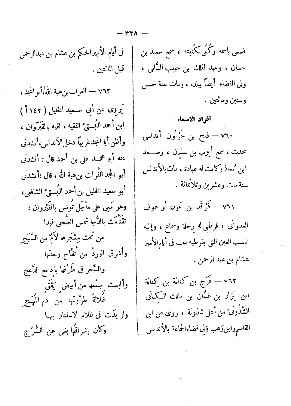 الفرات بن هبة الله أبو المجد، يروى عن أبي سعيد الخليل ابن أحمد البستي الفقيه، لقيه بالقيروان، وأظن أبا المجد غريباً دخل الأندلس؛ أنشدني عنه أبو محمد على بن أحمد قال: أنشدني أبو المجد الفرات بن هبة الله، قال أنشدني أبو سعيد الخليل بن أحمد البستي الشافعي، وهو معي على مأجل تونس بالقيروان: