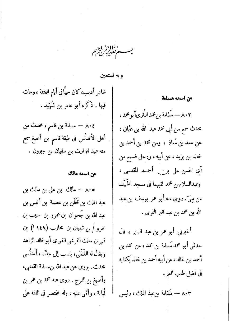 مسلمة بن قاسم، محدث من أهل الأندلس في طبقة قاسم بن أصبغ سمع منه عبد الوارث بن سفيان بن جبرون.