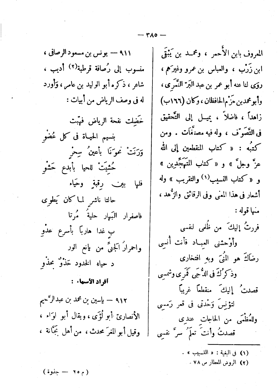 يونس بن مسعود الرصافي، منسوب إلى رصافة قرطبة أديب، شاعر، ذكره أبو الوليد بن عامر، وأورد له في وصف الرياض من أبيات: