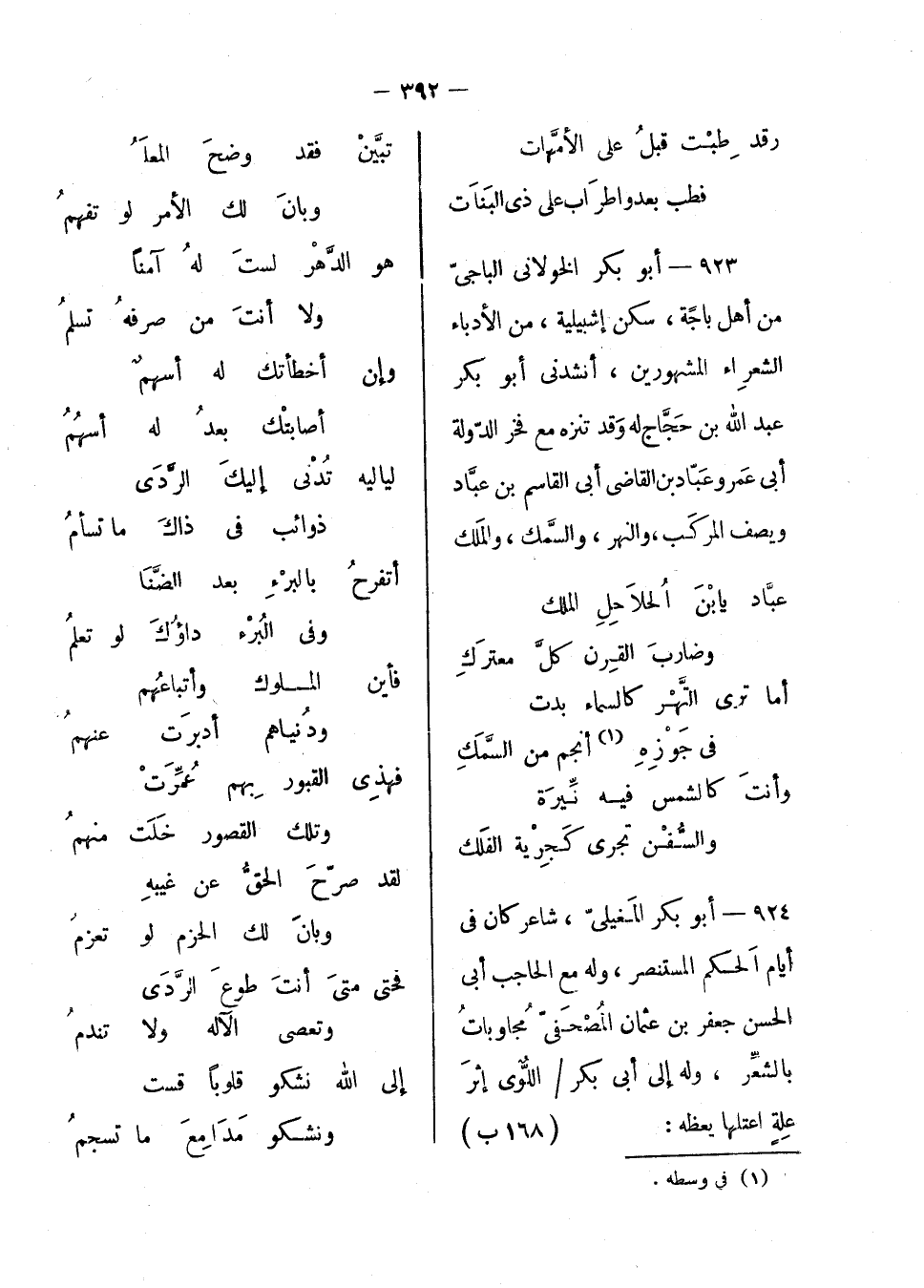 أبو بكر الخولاني الباجي من أهل باجة، سكن إشبيلية، من الأدبارء الشعراء المشهورين، أنشدني أبو بكر عبد الله بن حجاج له وقد تنزه معه فخر الدولة أبي عمرو عباد بن القاضي أبو القاسم بن عباد ويصف المركب، والنهر، والسمك، والملك: