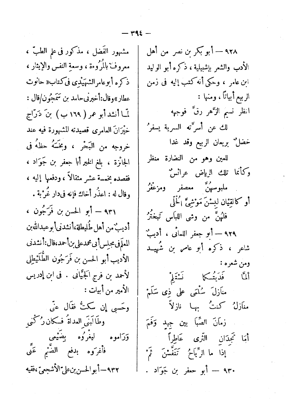 ابو جعفر بن جواد. مشهور الفضل، مذكور في علم الطب، معروف بالمروءة، وسعة النفس والإيثار، ذكره أبو عامر الشهيدي في كتاب حانوت عطار وقال: أخبرني حامد بن سمجون قال: لما أنشد أبو عمر ابن دراج خيران العامري قصيدته المشهورة فيه عند خروجه من البحر، وبخسه حظه في الجائزة، بلغ الخبر أبا جعفر بن جواد، فقصده بخمسة عشر مثقالاً، ودفعها إليه، وقال له: اعذر أخاك فإنه في دار غربة.