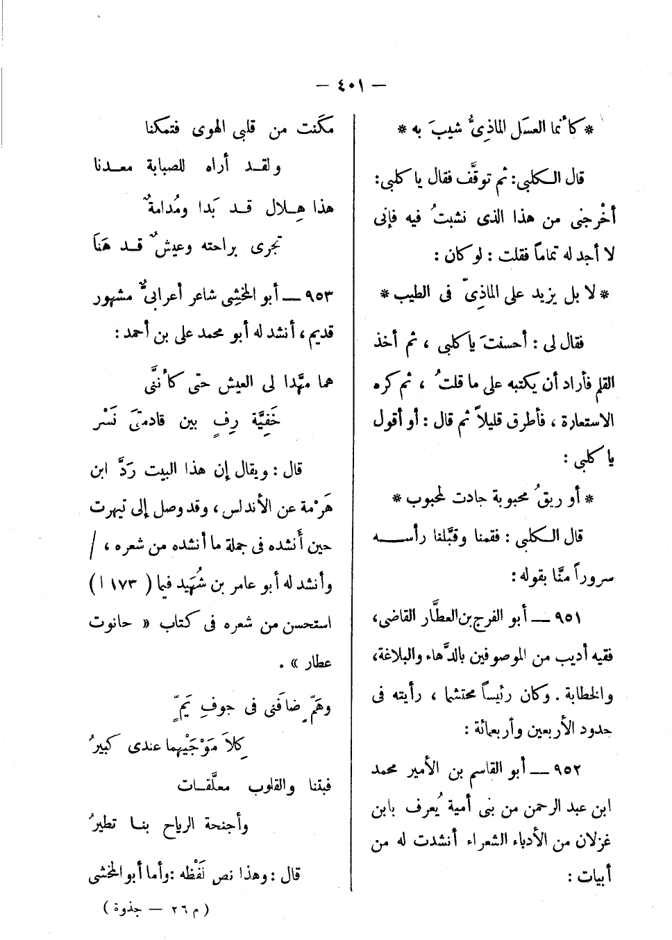 فقال لي: أحسنت يا كلبي، ثم أخذ القلم فأراد أن يكتبه على ما قلت، ثم كره الاستعارة، فأطرق قليلاً ثم قال: أو أقول يا كلبي: